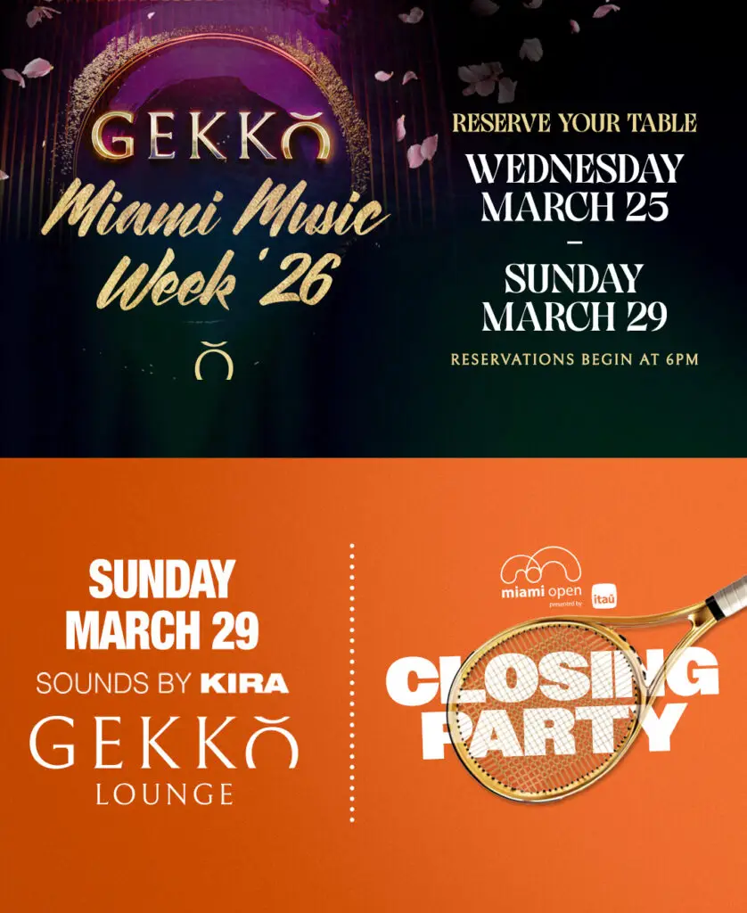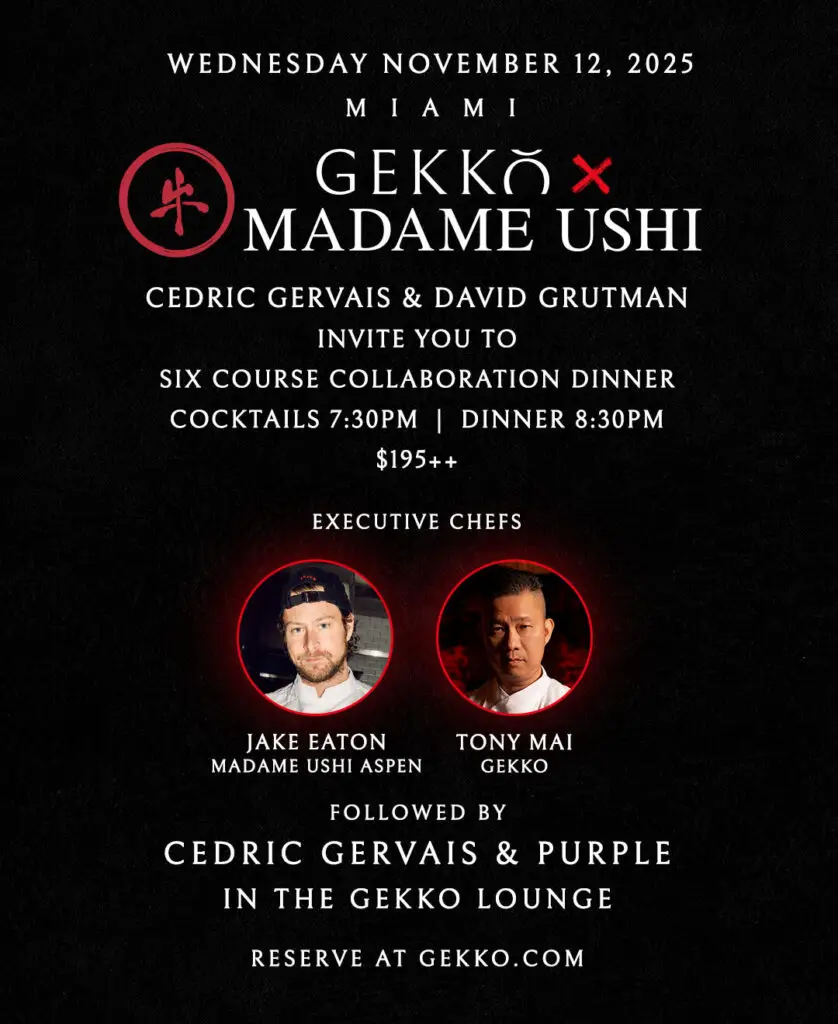 Gekko, a Japanese-inspired steakhouse and lounge by David Grutman and Bad Bunny, located in Miami’s Brickell neighborhood. It combines upscale steakhouse ambiance with modern Japanese cuisine, featuring premium steaks, innovative sushi, and seafood appetizers.