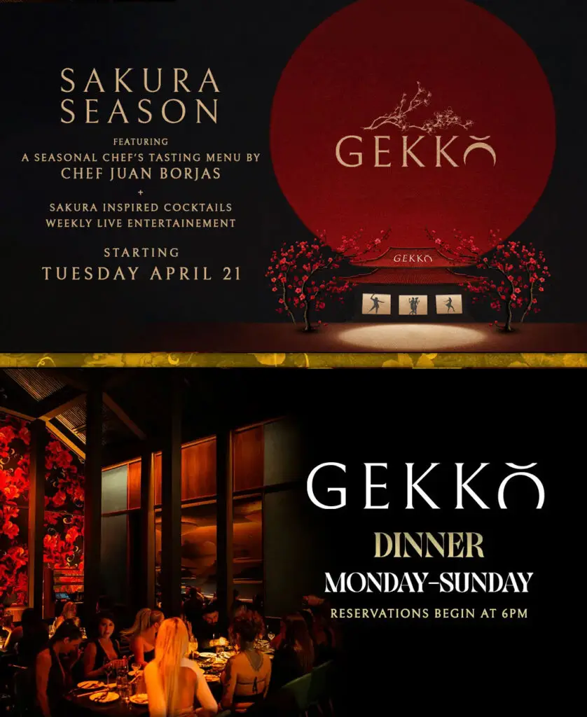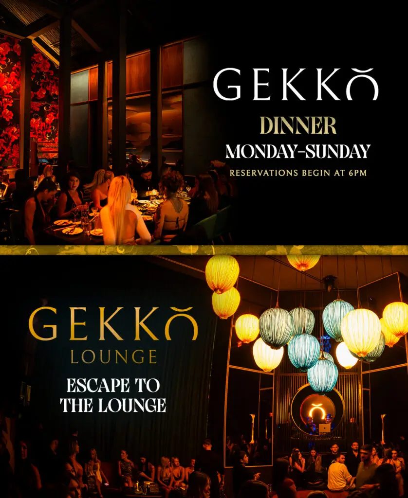 The lounge, with top DJs and VIP service, offers a vibrant nightlife experience. Gekkö’s luxurious, jewel-toned design creates an intimate atmosphere, fitting for a place named after the Japanese word for “moonlight.”